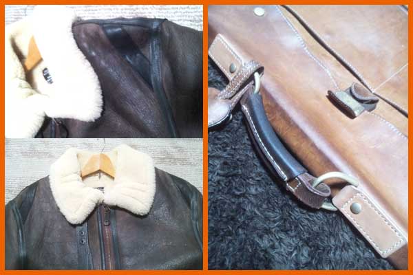 (右)新品の色が嫌だということで、予め天日で革を焼きました。
