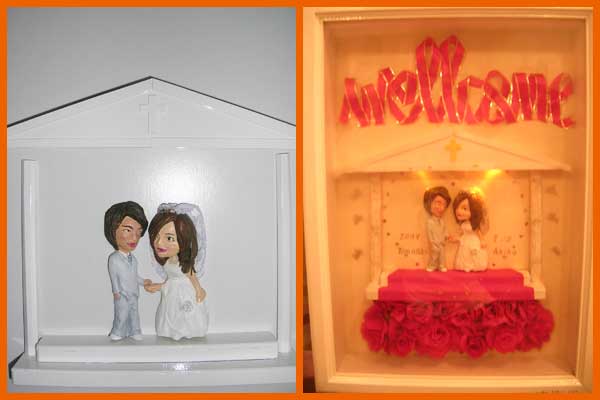 【左】 依頼内容 車が飛び出してくるイメージ 車は二人の愛車ワーゲンでということで作らせていただきました。