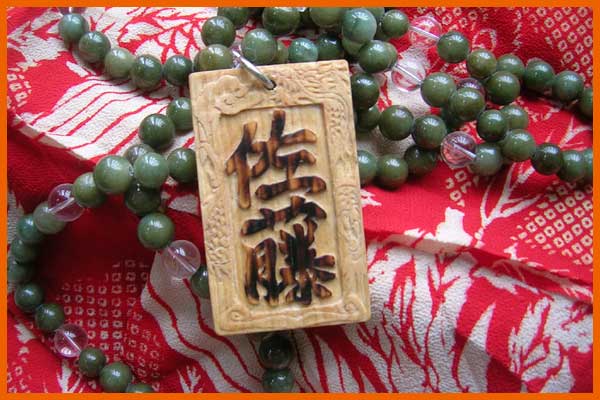 持ち込まれた翡翠の珠が12mm。それに負けな位の大きさで、縁に龍を入れて佐藤の木札が欲しいとの要望でした。縁には雲と龍。名前部分だけバーナーで焼き、翡翠の珠と木札ををワイヤーに通し完成しました。