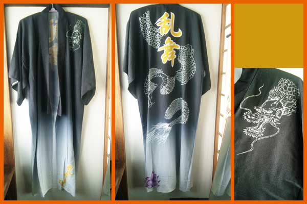注文依頼 黒と紫と白を使ったデザイン。男用には龍、女用には蓮の花を散りばめて欲しいということでした。女性用はきていの浴衣サイズではなく短めとのことだったので、通常男性浴衣の型紙データ、女性用の型紙データの制作から、デザイン構成を行いました。印刷は、作りポリエステル生地に昇華で仕上げました。