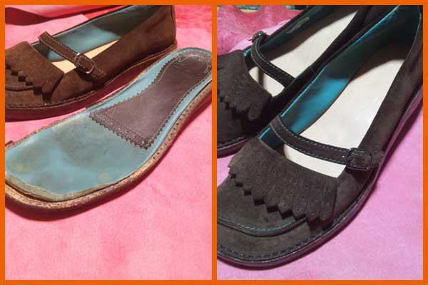 (右)新品の色が嫌だということで、予め天日で革を焼きました。